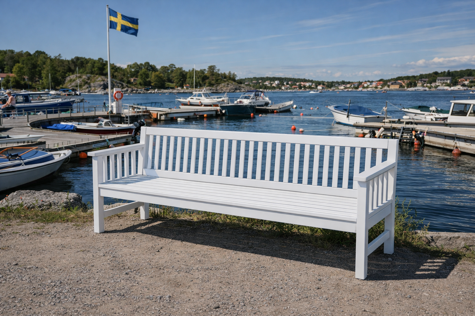 En gedigen och inbjudande parksoffa i FSC®-certifierad Norrlandsfuru, formgiven av Eden Wood för att förena styrka, hållbarhet och klassisk svensk design.