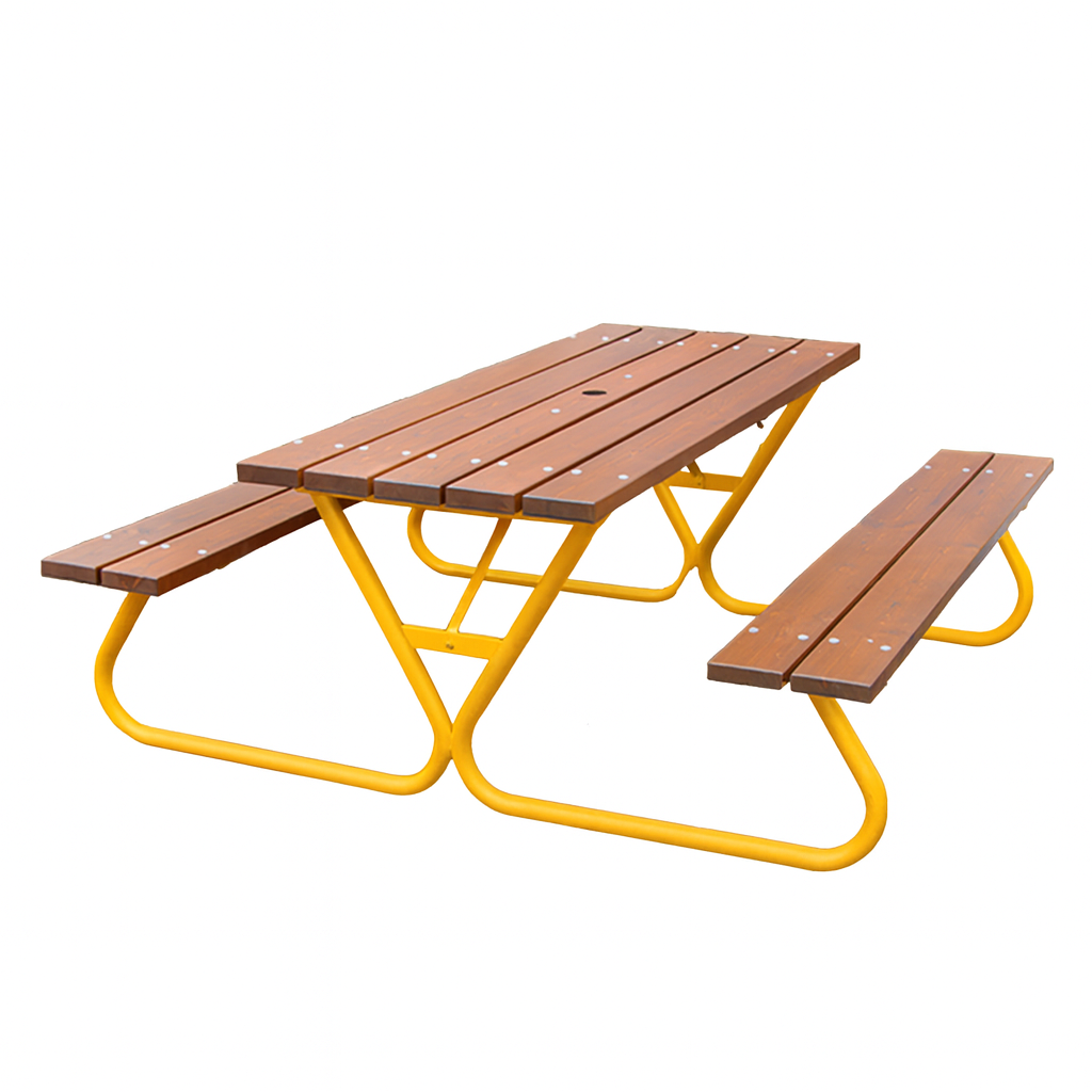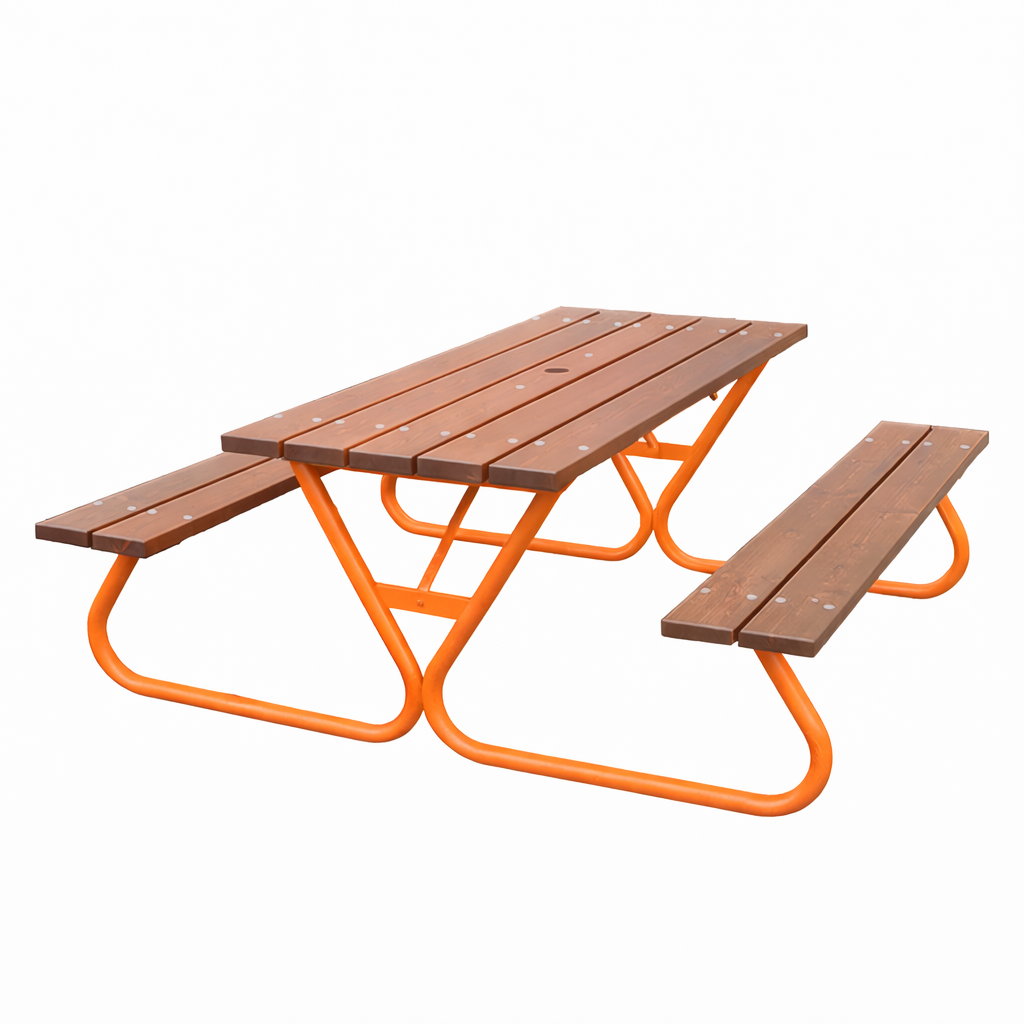 Robust picknick, 6 personer. Tillverkas i FSC ®-märkt norrlandsfuru. Varm galvaniserad 45mm rörstativ, Ø 50 mm parasolhål, 40 mm godstjocklek.