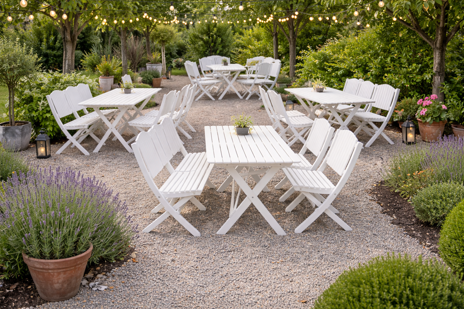 Eden Woods Skäret är en modern tolkning av den klassiska svenska trädgårdsmöbeln — ett set som fungerar lika bra som en lätt och smidig cafégrupp som en komplett matgrupp för mindre uteplatser.
