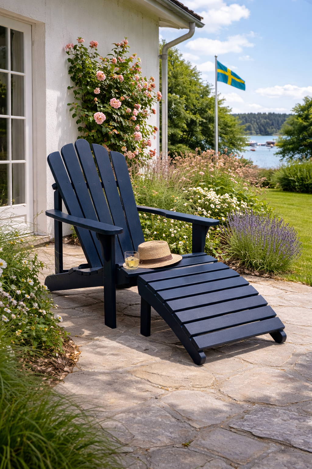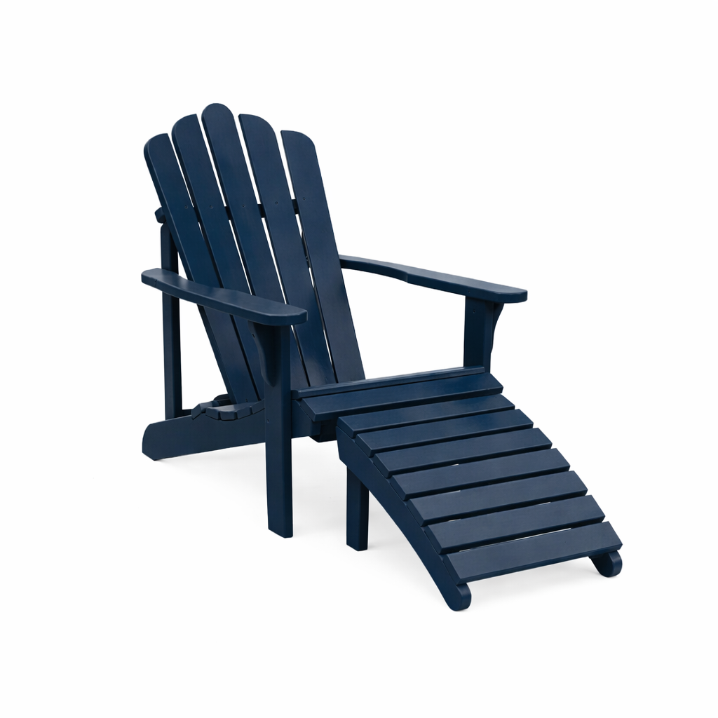 Mölle Adirondackstol i massiv FSC®-märkt svensk Norrlandsfuru med fotpall – en tidlös klassiker för avkoppling i trädgård eller på verandan..