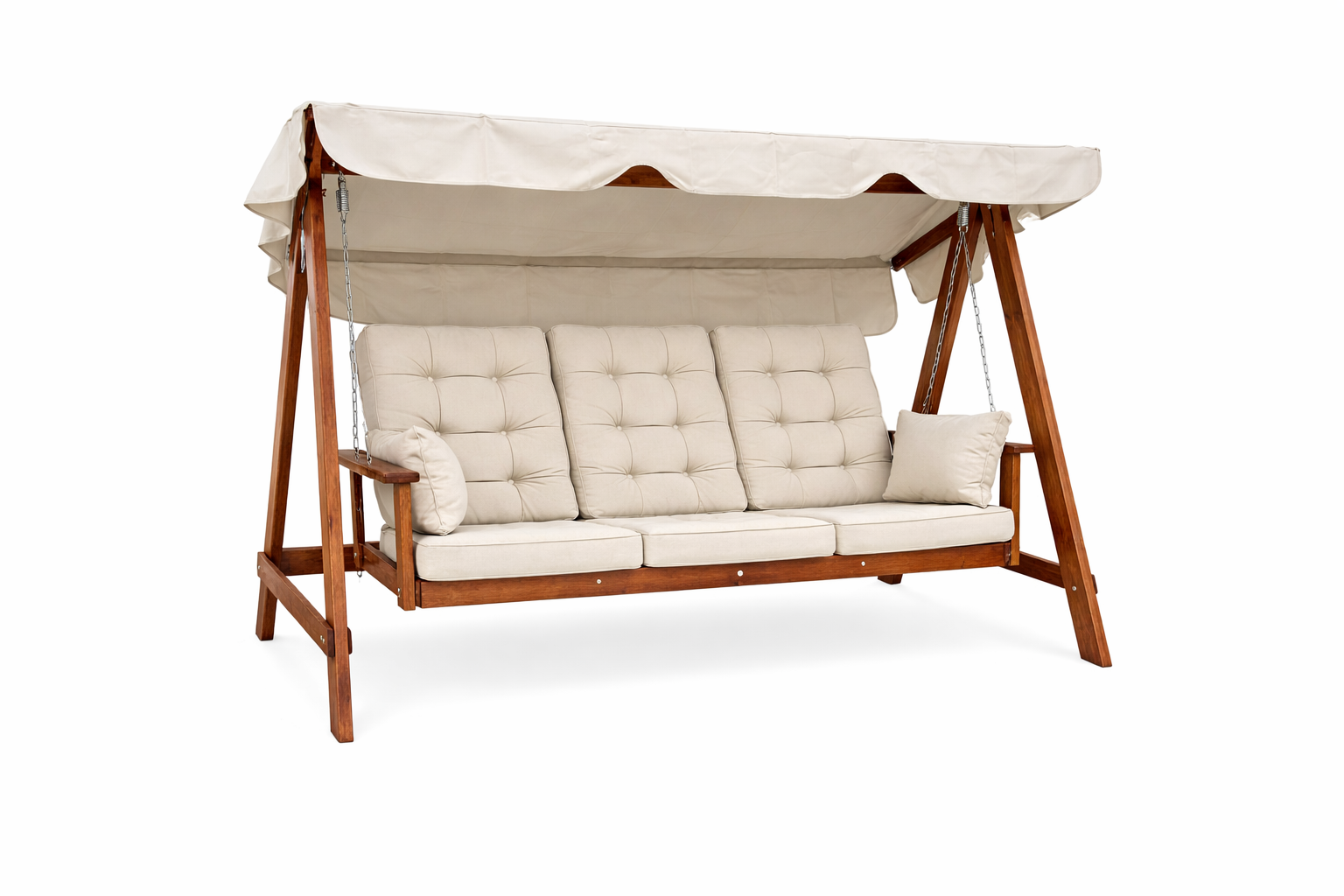 Hammock Mellby 3-sits från Eden Wood, tillverkad i vår fabrik i Skåne. Virket är FSC® -certifierad kärnfuru från Norrland. Ytbehandling består av 3 skikt utomhusakrylat, ger ett laserat utseende